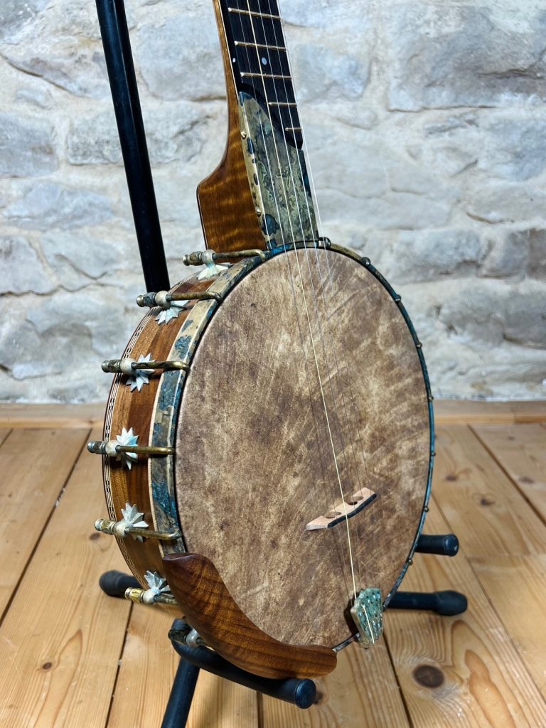 The Mermaid December 31, 2025December 31, 2025| 12:11 pm Categories : Openback banjos The 100th Hutchings banjo ! 00000000 Post navigation Previous page Older Posts Semi fretless all walnut banjo Related Post 11" Scoop Grenadillo May 22, 2017 May 22, 2017 | sam 11" Scoop Grenadillo | 0 Comments | 5:54 pm [...] View MoreView More The Kracken December 24, 2022 December 24, 2022 | sam The Kracken | 0 Comments | 10:28 am Fan fret tenor banjo with engraved kracken inlay, and custom designed fretboard inlay. This banjo [...] View MoreView More 12″ Moon Banjo January 14, 2017 January 14, 2017 | sam 12″ Moon Banjo | 0 Comments | 4:17 pm [...] View MoreView More